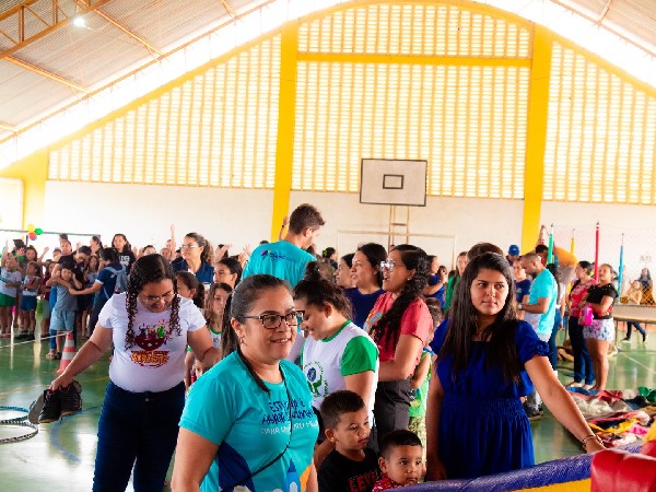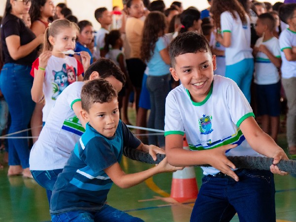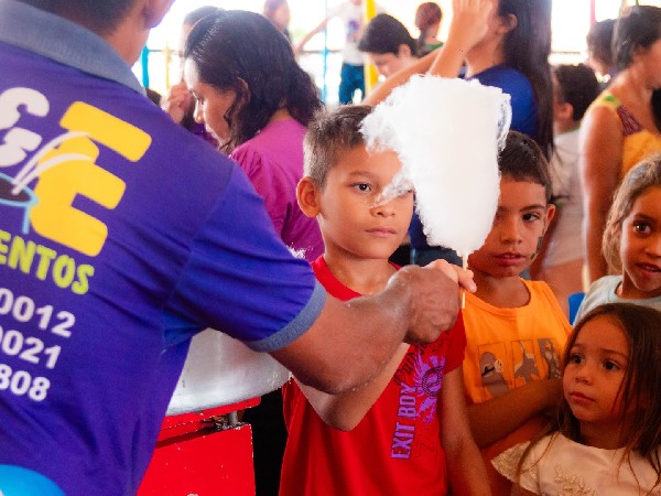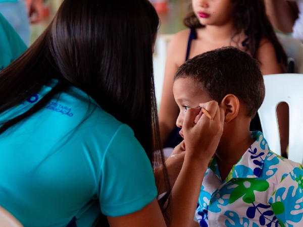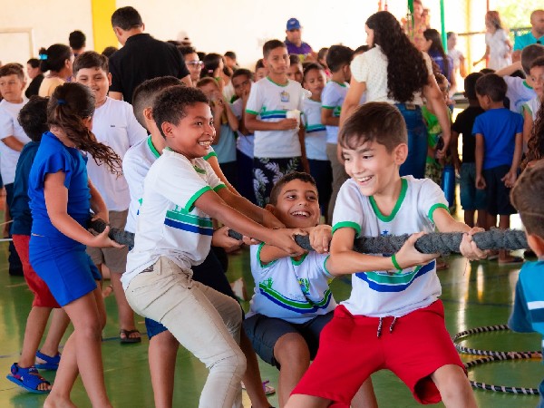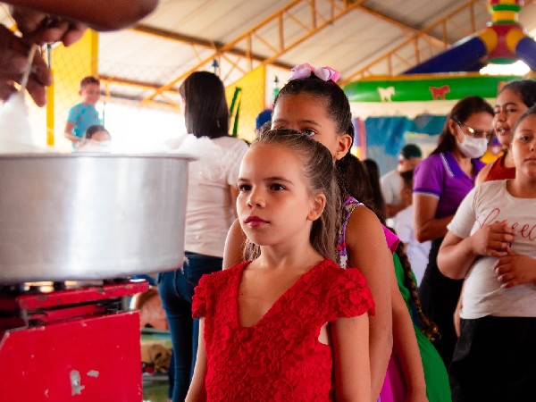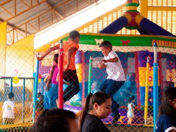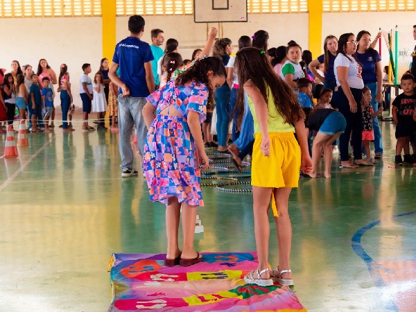 #ParaTodosVerem: Registro fotográfico do Dia do Estudante na Comunidade do Feijão, com crianças e jovens participando de atividades e brincadeiras em um ambiente festivo e acolhedor.